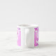 A pretty Espresso coffee mug, with a beautiful watercolour design of wallflowers in shades of pink, mauve, purple and blue, from a handpainted design by Judy Adamson.