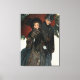 This artwork, a photographic reproduction from 1905, captures an elegantly dressed couple walking arm in arm under an umbrella in the snow. The couple is dressed in fine clothing, complete with hats, creating a charming and nostalgic scene. The snowy background, along with the pine branches, enhances the feeling of warmth and elegance, evoking the serene beauty of a bygone era.