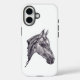 An artistic grayscale, graphic style image which depicts a portrait of a horse's head. Just an equine beauty.