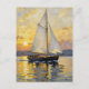An Impasto Illustration of a Sailboat at Sunset Postcard