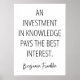 An investment in knowledge pays the best interest - Benjamin Franklin Inspirational Quote