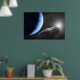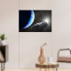 An artist's concept of Neptune's tiny moon Hippocamp that was discovered by the Hubble Space Telescope in 2013. Only 20 miles across, it may actually be a broken-off fragment from a much larger neighbouring moon, Proteus, seen as a crescent in the background. This is the first evidence for a moon being an offshoot from a comet collision with a much larger parent body.