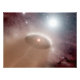 An O-star just behind a young, cooler star and its swirling disc of planet-forming material featured by artist.