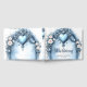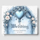 An ornate light blue archway with floral accents, guest book