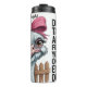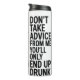 This quirky graphic illustration features a stylized ostrich with a large pink bow on its head, peeking over a wooden fence. The text on the right reads, "DON'T TAKE ADVICE FROM ME YOU'LL ONLY END UP DRUNK." The art has a fun, whimsical, and humourous tone, perfect for a party