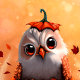 A charming illustration of a cute owl nestled in a pumpkin, inspired by a beloved plush toy on my desk. This piece uses a unique metaphor: the owl emerging from the pumpkin like a chick from an egg, symbolizing the birth of autumn. Featuring the compact proportions of a Saw-whet Owl, this little guardian watches over my creative space. With red and brown leaves swirling around, it’s a whimsical reflection of my personality and the magical, festive atmosphere of fall.