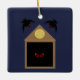 This awesome ornament features a graphic image of a brown nestbox in a clock tower with two red eyed ravens flying towards it, one from the left and one from the right. The Ravens are black and have red eyes. There is also a third Raven hiding inside the black darkness of the nest with only the creepy red eyes showing in the dark. There is a clock above the entrance to the nest with a yellow face and darker roman numerals on it. Instead of 12 at the top there is a 13. The design gets its name from a group of Ravens which is known as an unkindness.