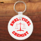 Analytical Chemist - white keychain with red collegiate style lettering and antique balance graphic.