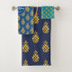 Un motif d'ananas tropical moderne couleur faux or. Le bleu marine d'été, le bleu marine et le vert comme couleurs arrière - plans. Écriture de style et modèles en lettres de couleur blanche pour votre nom de famille et l'année établie.