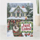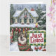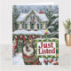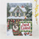 This comical Christmas card features a charming dog in a holiday sweater, standing beside a festive "Just Listed" sign in front of a snow-covered house. Perfect for real estate agents, this humourous card adds a playful touch to your holiday greetings, combining the love of dogs with the spirit of the season. Ideal for realtors looking to spread cheer while showcasing their profession, this card is sure to bring smiles to clients and colleagues alike.