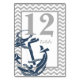 Printed table number card with grey and navy blue anchor and chevron zigzag style design to compliment our wedding invitation set, can be personalized and ordered individually.