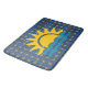 A Nautical Blue Patterned Bath Mat Anchored Squares With A Sun And Wave Perfect For Beach Or Lake House Bathroom Decor.