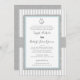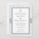 Nautical grey stripes accented with pale blue. Anchor design with rope and the look of grey burlap on this unique beach wedding invitation.