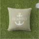 Nautical Anchor Pillow. White Nautical Anchor with Custom Boat Name on solid Grey Olive Green background. Modern anchor logo combined with classic Serif Font Boat Name template. This Khaki nautical pillow is a great decorating idea for elegant outside seating areas and a beautiful gift idea for her and him, boaters and sailors. Patio deck decorating ideas made with ocean love. #ybeedesign #ybeesea #anchorpillowsnautical #boatpillows #olivegreenpillow #khakipillow © Design y.BEE SEA