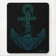 Anchor Nautical Art Illustration Outline in Sea Blue Ombre on Black on a mousepad.