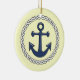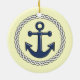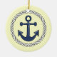 Nautically themed ceramic hanging holiday ornament has an encircled anchor.