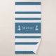 Anchor Nautical Coastal Blue White Stripes Name Bath Towel Set