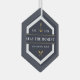 A perfect gift for boat owners, this nautical Christmas ornament in classic navy blue and white features your boat name, year established, and ship's registry in a modern geometric layout accented with anchor and oar illustrations.