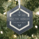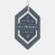 A perfect gift for boat owners, this nautical Christmas ornament in classic navy blue and white features your boat name, year established, and ship's registry in a modern geometric layout accented with anchor and oar illustrations.