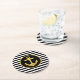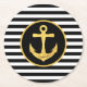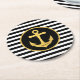Custom paper coasters featuring black stripes and gold anchor nautical theme.