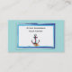 Business cards with a sailing / boating motif. A watercolor design of a pink anchor with a metal look. An aqua green rope wraps around it, with a seashell conch sitting at the bottom. Set on a green background with the anchor and information inside a rectangular frame with a blue green sketchy border. Nice business card template design for those with "anchor" in their business name or those in sailing, boasting, diving or other nautical themed businesses and professions. On the back there is plenty of room for business information and a blue nautical knot at the bottom.