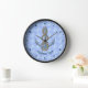 Anchor with rope illustration over waves light blue seamless background. Custom text.