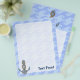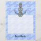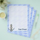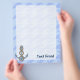 Anchor with rope illustration over waves light blue seamless background. Custom text.