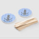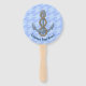 Anchor with rope illustration over waves light blue seamless background. Custom text.