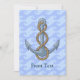 Anchor with rope illustration over waves light blue seamless background. Custom text.