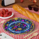 Great accent for an outdoor summer party. Bright colors, vibrant floral design