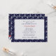 A handsome nautical design featuring a pattern of white anchors and dots and tiny red hearts overlaid with a white transparent panel. Well-suited for baby showers, birthday parties and more. The card is easy to customize with your wording, font, font colour, paper shape options and choice of six paper types.