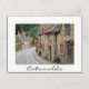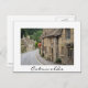 Carte postale des anciens chalets couleur miel en pierre de Cotswold avec ardoise sur le toit dans le petit village pittoresque et féerique de Castle Combe dans les Cotswolds, Angleterre, Royaume-Uni avec une bordure blanche et le texte : 'Cotswolds'. com. com