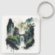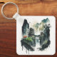 Ancient Chinese Ink Landscape with Waterfall Keychain