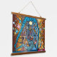 Hanging Tapestry of Ancient Egyptian Art with God Geb Supporting Goddess Nut in Heaven features colourful prismatic hieroglyphics and the gods of Ancient Egypt. Geb was known as the god of the Earth and a member of the Ennead of Heliopolis. Here he supports Nut, the Egyptian goddess of the sky, stars, cosmos, mothers, astronomy, and the universe in the ancient Egyptian religion. This beautiful art will look good anyplace you hang it. For more Personalized gifts with a spiritual theme and good vibes, visit our store at zazzle.com/NextDimension.