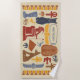 This beach towel is ready to be personalized with a name in light blue lettering set inside and Egyptian cartouche style frame. The name accompanies a collage of graphics inspired by ancient Egypt. My illustrations depict the god Thoth, the cat goddess Bastet, the sacred scarab beetle, the sign of life, Queen Nefertiti, King Tut, Anubis and more. Illustrations are in shades of blue, orange, red, yellow and brown on this sand coloured beach towel.