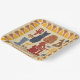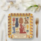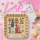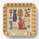 Add your own message to create personalized party supplies with an Egyptian theme. These paper plates feature a collage of different illustrations inspired by the artwork of ancient Egypt with your own custom message inside of a cartouche shaped frame. Graphics in yellow, orange, red, brown and blue are set against a light sand coloured background.