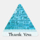 A set of blue pyramid "Thank You" triangle shaped stickers with ancient hieroglyphs engraved on stone. The words "Thank You" are customizable!