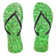 A pair of green flip flops with ancient hieroglyphs engraved on stone. Feel free to customize the strap colour!