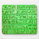 A green mousepad with ancient hieroglyphs engraved on stone.