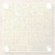 A yellow glass coaster with ancient hieroglyphs engraved on stone.