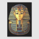 Ancient Egyptian King Tut Gold Mask magnet card ... Ancient Egyptian Pharaoh King Tutankhamun Gold Mask Found Upon the Burial Mummy. The most beautiful ancient portrait ever discovered of pure gold, dark blue glass, and Afghanistan Dark Blue Lapis Lazuli precious cut stone. The boy king ruled Egypt 9 or 10 years ... about 1333 or 1332BC to about 1324 or 1323 BC from about age 9 or 10 until about age 19. His tomb was discovered intact in 1922. His mummy was found encased inside a pure gold sarcophagus in the form of the AE god Horus nested within two gold encrusted covered wood sarcophagi also each in form of the AE god Horus. He was son of Pharaoh Akhenaten who has been most remembered for trying to lead toward a one god belief system. King Tutankhamun is most remembered for returning to the standard AE belief system.
