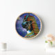 Ancient Egyptian 10" Round Wall Clock with Natural Wood Frame. This unique, high-quality wall clock is vibrantly printed, protected by a high-impact plexiglass crystal face, and features a pre-installed backside hanging slot for easy hanging and a non-ticking design. Size: 10" L and 1.75" W (deep), wood frame available in three colours, required AA battery not included, indoor use only, not recommended for outdoor use.