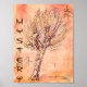 a Mystery art from another time, dimension, universe... Weathered drawing of a tree on a light yellow orange background. The word is customizable.