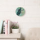 Designed to match the wedding invitation suite of the same name, this elegant and sophisticated personalized wedding or anniversary clock is a wonderful modern but vintage design. It's perfect for a bridal shower or wedding gift! Mixing Vintage art elements and contemporary watercolor art work hand painted by Audrey Jeanne Roberts gives a beautiful and timeless quality to this design. A stately Botanical Vintage Peacock rests upon a large tree branch over elegant etched swirls. The background is a aqua blue, hand watercolored lace over parchment and grunge pattern that looks tea stained. There are about 10 background colours available.