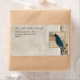 NOTE: This is a flat printed design, on matte stock. There is no actual 3D elements in this artwork. Everything is graphically created to look very real however. COLOR PALETTE: aqua blue, green, cream, tan, brown. DESIGN: This is a matching envelope labels for wedding invitation, bridal shower or save the date uses. This design consists of a stately peacock on a tree branch vintage art element layered over etchings, swirls, antique handwriting, hand painted parchment and vintage love birds. All of this is layered over a tea stained, antiqued parchment like background. The teastained background has a very old and elegant look to it. This design has the appearance of a hand torn and curled edge layered over a hand designed damask type swirl background. The background colour can be changed to match your wedding.