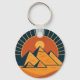 Carry the Ancient Pyramids Sacred mystique with you everywhere with this stunning Keychain Art. This captivating accessory features a bold, retro-style illustration of the pyramids at sunset, rendered in a rich colour palette of navy blue, burnt orange, and gold.
