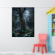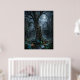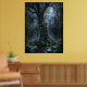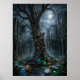 A surreal moonlit courtyard is dominated by a colossal ancient tree, its twisted roots and textured bark forming an almost sculptural presence. Behind it, the ruins of a once-grand gothic mansion stand in elegant decay, with shattered windows, crumbling stone, and overgrown pathways. Soft moonlight filters through drifting mist, illuminating glowing mushrooms, damp stone, and intricate natural details. The scene blends nature and architecture into a melancholic yet refined composition filled with depth and atmosphere. This artwork is ideal for lovers of dark fantasy and timeless, mysterious landscapes.