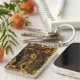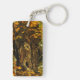 This fine art photography keychain displays an ancient brown and black maple tree trunk surrounded by brilliant autumn foliage in yellow, red, orange and green. The old knots and bark form an interesting abstract pattern.