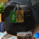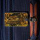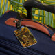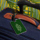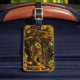 Easily customize the back of this luggage tag with your personal information. It displays an ancient brown and black maple tree trunk surrounded by brilliant autumn foliage in yellow, red, orange and green. The old knots and bark form an interesting abstract pattern. Make your baggage stand out on an airport carousel with unique tag designs!