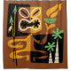 This old inscription showcases a man from an ancient tribe engaged in performing sacred tribal rituals. In his left hand, he holds a plate adorned with a flame of fire, symbolizing the significance of fire in these rituals. His other hand grasps two hunting or fighting spears, representing the skills and tools used by the tribe. The scene is further enhanced by the presence of palm trees, adding a touch of natural surroundings. This intricate depiction is found on a remarkably old inscription plate from the Aztec or Mayan era, reflecting the cultural practices and beliefs of that time.
